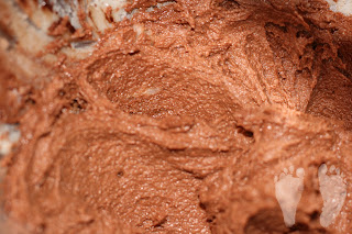 Throw 2 sticks of butter and 1 1/2 cups sugar into a stand mixer. (Have I mentioned how much I love my Kitchen-Aide. Definitely a wonderful wedding gift!) Let it beat until it is creamy and not grainy. You’ll probably have to scrape the butter off the beaters a few times. Once that is done add 2 ounces of unsweetened chocolate, melted, and 2 teaspoons of vanilla. Your filling should then look like the picture above.